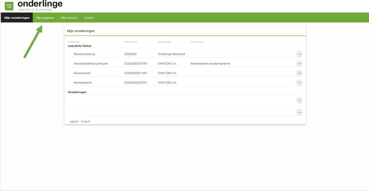 - Vervolgens drukt u op “mijn Onderlinge”: